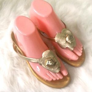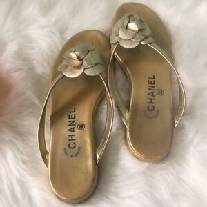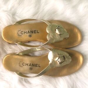 Chanel Gold Camellia Thong Sandals Women's Size 7.5