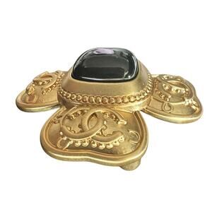 Chanel Gold Clover Onyx Brooch (CCXX012)