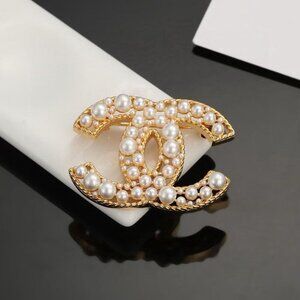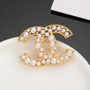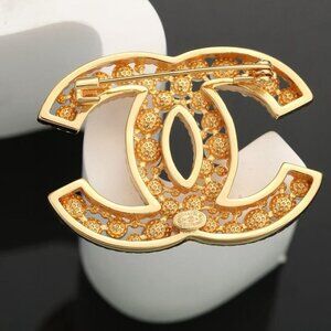 Elegant Chanel brooch adorned with sparkling crystals. Perfect for adding a touch of luxury to any outfit.
