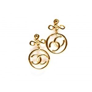Chanel Gold Drop CC Hoop Vintage Clip On Earrings