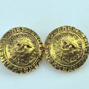 Chanel Gold Gold Plated CC Round Clip On Earrings Golden authentic 26mm GS341