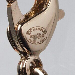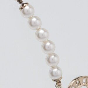 Show off your love of Chanel with this chic and new necklace. Featuring a mini size of the classic flap bag crafted from goldtone metal and resin with crystal CC. The necklace has faux pearls and a curb chain for a fun and whimsical look.