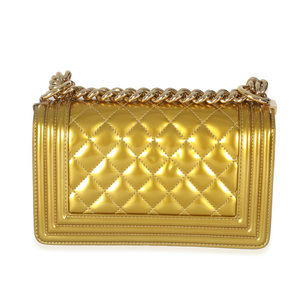 Listing Title: Chanel Gold Metallic Patent Calfskin Quilted Small Boy Bag