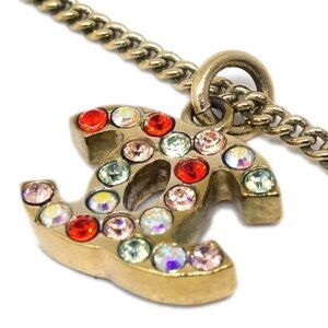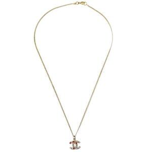 Chanel Gold Mini CC Pendant Necklace Rhinestone 04A 163492