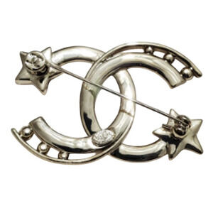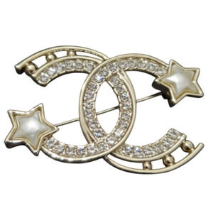 Chanel Gold tone Interlocking Brooch with Pearl Star detail