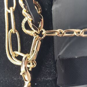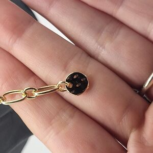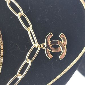 Elevate your style with this exquisite Chanel necklace. Featuring a luxurious gold chain and elegant black accents, this piece is adorned with pearl details for a touch of sophistication. Perfect for any occasion.