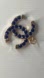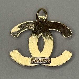 Elegant Chanel pendant featuring a stunning gold finish with vibrant blue accents. Perfect for adding a touch of luxury to any outfit.