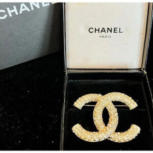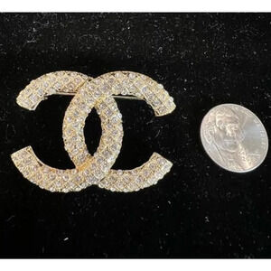 Chanel Gold and Crystal Interlocking CC Brooch Autumn/Pre-Fall 2022 (CCXX025)