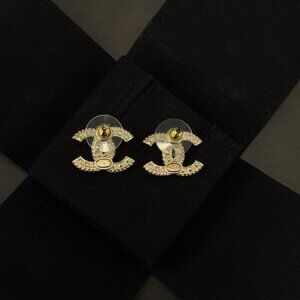 Chanel Gold-Tone Crystal CC Logo Stud Earrings Jewelry Made In France