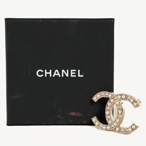 This Chanel Gold-Toned Brooch features the iconic interlocking CC logo in a luxurious gold-tone. Adorned with delicate pearls and sparkling crystals, this brooch is an elegant and timeless accessory.