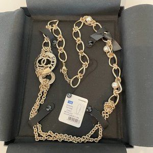 Chanel Golden Chain Strand Necklace with Signature Pearls