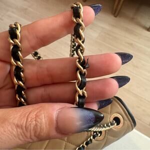 Chanel Graphic Flap Bag Quilted Calfskin Medium black beige with gold hardware 31 Rue Cambon written on hardware