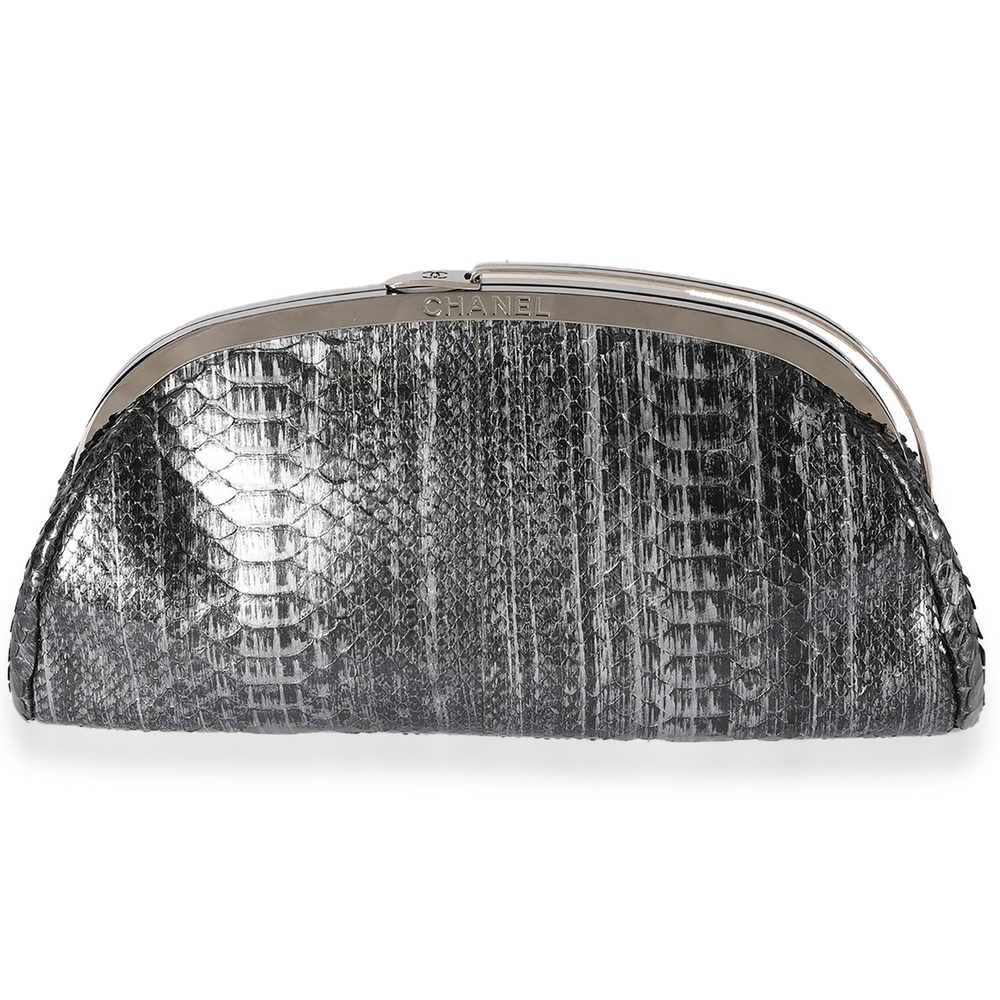 Chanel Gray Python Frame Clutch