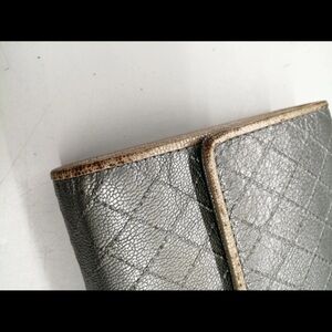 Elevate your style with this elegant Chanel gray quilted clutch. Perfect for any occasion, this chic accessory adds a touch of luxury to your ensemble.