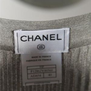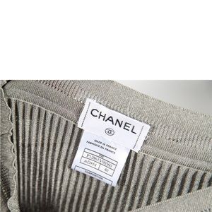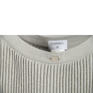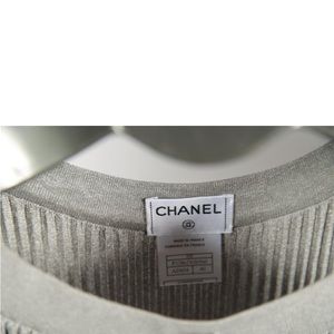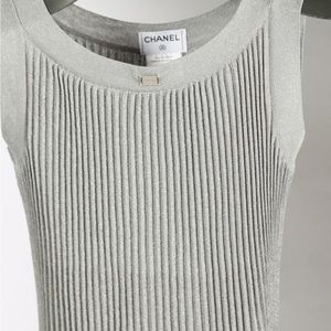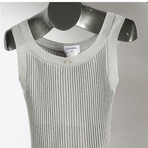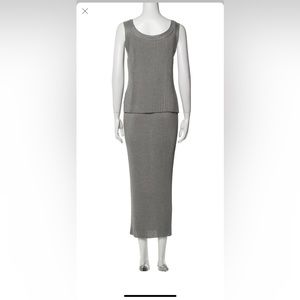 Size: 40. Knit sleeveless top with ribbed texture. Gray in color with subtle glittery elements. Comes with top and skirt.
