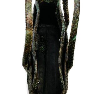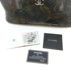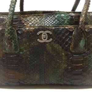 Chanel Green/Brown Multi Python Skin Cerf Tote