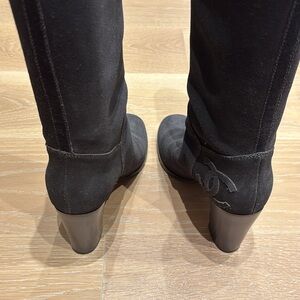 Chanel Grey Suede Knee High Boots 38.5