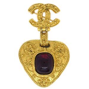 Chanel Gripoix Brooch Pin Gold Red 94A 195334