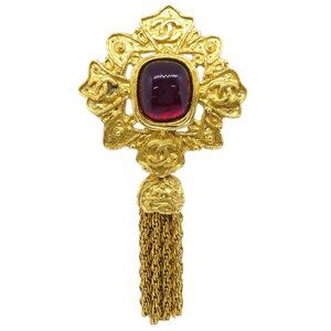 Chanel Gripoix Brooch Pin Gold Red Fringe 94A 165789