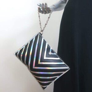 CHANEL HOLOGRAPHIC CHEVRON ZIP POUCH BLACK & SILVER MEDIUM WRISTLET CLUTCH BAG