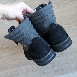 Chanel Interlocking CC Logo 2015 Gray Black Suede Lace Up Combat Boots Size 38.5
