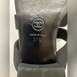 Chanel Interlocking CC Logo Grosgrain Chain Bow Black Sandals EU 37.5 US 6.5-7