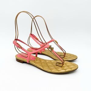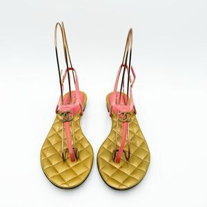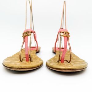 Chanel Interlocking CC Logo Quilted Leather Sandals Pink Gold 37 C