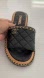 Chanel Interlocking CC Logo Slides Sandals Shoes Black Leather Gold Chain