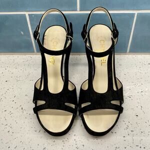 Chanel Interlocking CC Logo T-Strap Sandals 36.5 Black 2013 Lagerfeld With Box