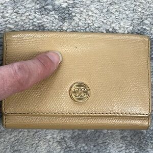 Chanel Interlocking CC Medallion Leather Keyholder Case Trifold Beige