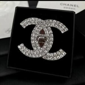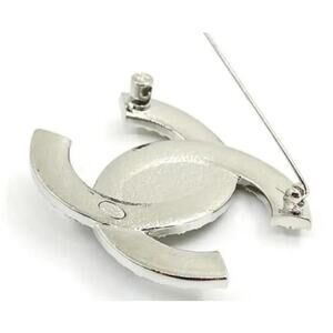Chanel Interlocking CC Silver Turnlock CZ Brooch (CCXX039)
