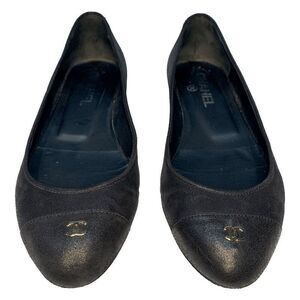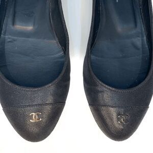 Chanel Interlocking CC Logo Black Cap Toe Ballet Flats EU 37.5 US 6.5-7 Slip on