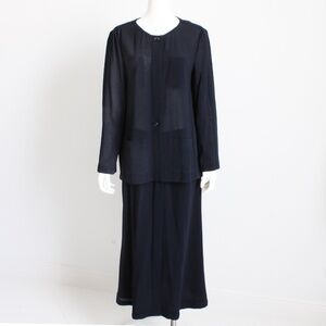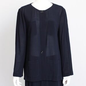 Chanel Jacket + Skirt Suit 2pc Sheer Wool Crepe Button Front Navy Blue 99P HTF