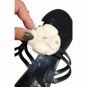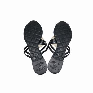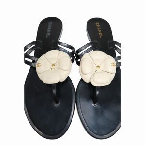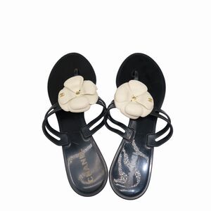 Chanel Jelly Camellia Coco Mark Thong Slipper Sandals Black Size 40