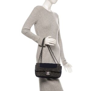 Chanel Jersey Tweed Quilted Medium Flap Navy