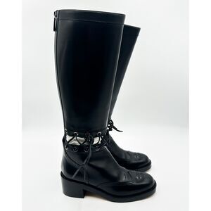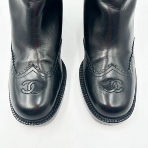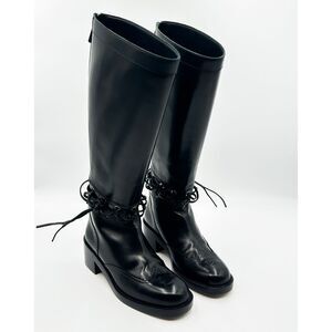 Authentic Chanel Knee High Boots Cap Toe Cutout Lace Up