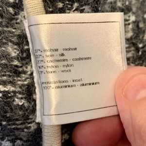 Crafted from dark gray, light gray and cream white mohair-cashmere-silk-wool blend, this zipped jacket has a collar that can be worn stand-up or folded down. It has three-quarter length sleeves and two pockets with metal embellishments. Created in France, the jacket is a size 38. This item has been authenticated.
