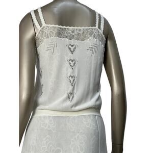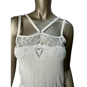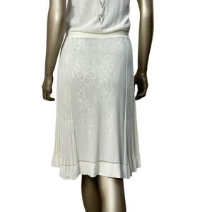 Indulge in timeless elegance with this exquisite Chanel slip dress. This dress features delicate lace detailing, soft patterned knit, and subtle pleats. The sheer effect adds a touch of allure. Perfect for summer days or a luxurious loungewear statement. Elevate your wardrobe with this iconic piece from Chanel.