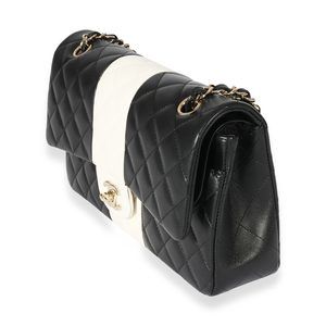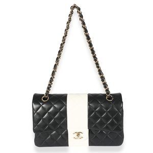 Chanel Lambskin Black White Stripe Medium Flap Bag