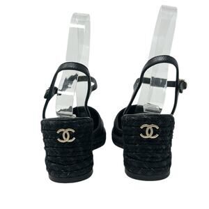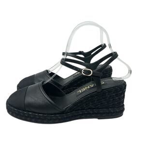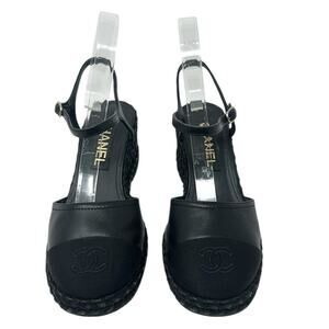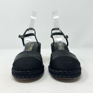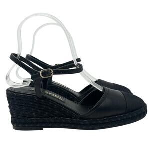 Chanel Lambskin Grosgrain CC Cap Toe Wedge Espadrilles Black Size 37