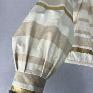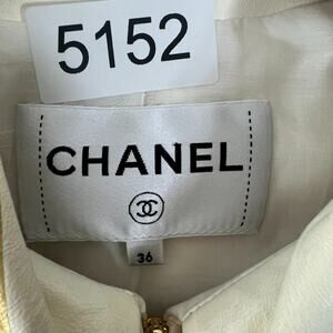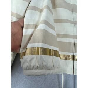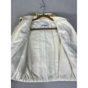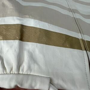 Chanel Lambskin Leather Jacket Women's Size 36 Beige & Gold Stripe Detail Zip