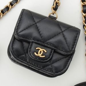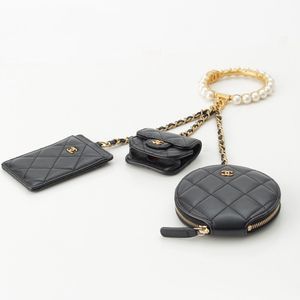 Chanel Lambskin Matelasse Coco Marc Pearl Crown Handle Multi Pouch Black
