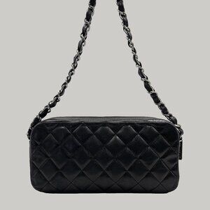 Mid - 2000's elegant Chanel shoulder bag is a distinctive style and beautifully crafted of diamond-quilted lambskin leather in black.