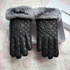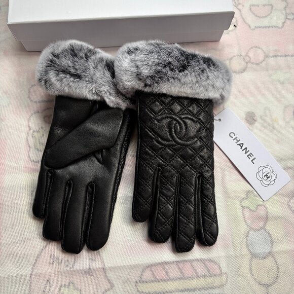 Chanel Lambskin Quilted Rabbit Fur Gloves