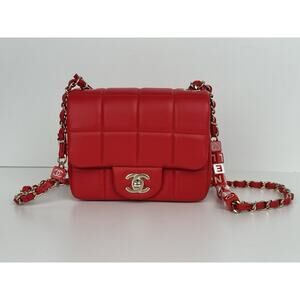 Chanel Lambskin Resin Crystal Square Quilted Monacoco Mini Flap Red C-6