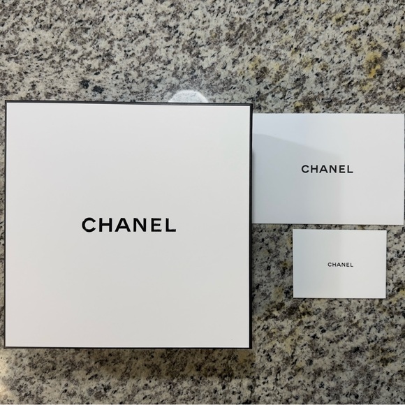 This is a brand new, authentic Chanel box set. Received from my recent online purchase from Chanel.com, this set comes with the box, Chanel tissue paper, paper filling, Chanel receipt envelope and a gift envelope.