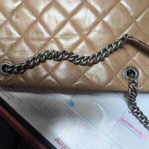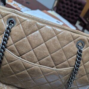 Chanel Large Shopping Bag, crafted in calfskin with ruthenium-finish metal in dark beige. The style code is A92374.