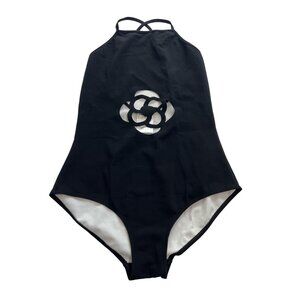 Chanel Laser-Cut Camellia Cutout One Piece Swimsuit in Black