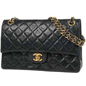 Chanel Leather Bag W Matelasse Black Flap Shoulder Chain