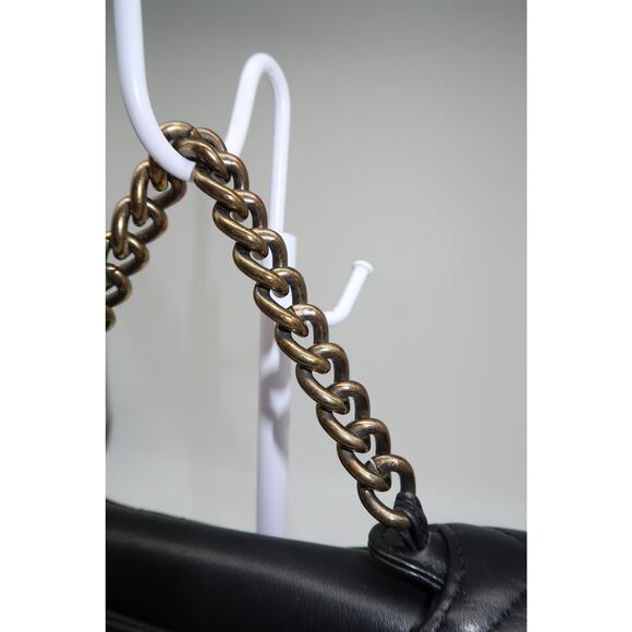 This Chanel Perfect Edge Flap Shoulder Bag is crafted from black quilted leather and finished with the iconic CC turn-lock logo. Its structured silhouette and signature chain strap embody timeless elegance and modern sophistication.